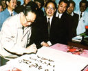 1996年3月27日,原全國人大副委員長廖漢生第五次回故鄉(xiāng)桑植縣, 參加賀龍元帥百年祭活動。圖為廖漢生同志在市長李剛鋌陪同下參觀剛剛落成的洪家關(guān)賀龍元帥紀(jì)念館。攝影/龔建軍