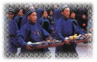 即不死而進入陰間的巫教活動。法師作某種法術(shù)時,需使此法,即從人群中選出數(shù)人,以黑布蒙頭蓋面,背東面西,坐于凳上,法師在他們面前念咒,邊念邊舞,還向蒙面者噴法水,用師刀指著圓符,不久,蒙面者便神魂入定;似有神附體,慢慢地全身抖動起來,手舞足蹈,這就是已“進入陰間”。據(jù)傳過陰之人,雖蒙頭蓋面,也能辨別方向,隨法師的指使行事,陰間之事能有問必答,人們所要了解之事,也都從他們那里得到答復(fù),并可以探求禳解之法。法師用法術(shù)指使他們?nèi)プ龈鳂邮虑?。到一定時間,法師用咒語報他們招回,他們在法師的指示下,陸續(xù)返回陽世清醒過來。若有個別不能返回,法師則加倍對他們施法,用刀指向他,并念咒畫符,強令返回。過陰之人蘇醒后,法師揭開頭蓋,這時個個面色慘白,目光遲鈍,如害一場大病。法師再施以復(fù)原之術(shù),使之慢慢復(fù)原。他們復(fù)原后,完全忘記陰間的事情。