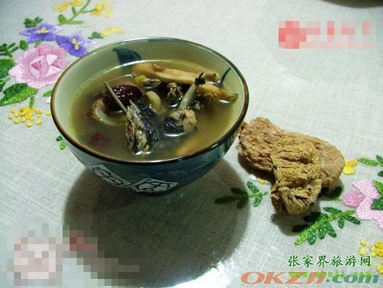烏雞天麻湯極具營養(yǎng)價值,是民間滋補“秘方”。“張家界”八大公山一帶的天麻,色金黃,透明發(fā)亮,是天麻中的上品,可治療頭暈目眩、中風偏癱,又滋補,又治病,兩全其美。 |