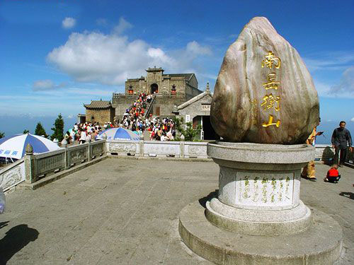 山巔祝融峰,海拔1290米,由于煙云的烘托和群峰的疊襯,構成了"萬丈祝融拔地起,欲見不見輕煙里"的雄姿。登臨其上,可見北面庭湖煙波渺渺,若隱若現(xiàn),南面群峰羅列,如障如屏,水面湘江逶迤,宛如玉帶,西面雪峰山頂,銀濤翻騰,萬千景象,盡收眼底。