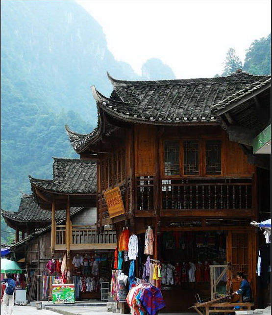 村寨四周山勢(shì)雄奇,絕壁夾天;“夯峽”、“九龍”、“玉泉”三溪在這里相會(huì),如同三根彩帶在這里相交結(jié)。這里是風(fēng)景區(qū)的中心,一萬五千多米長(zhǎng)的青石板路從這里一直通向各個(gè)景點(diǎn)這里還是一個(gè)角度十分好的觀景臺(tái),人立于此,只要原地轉(zhuǎn)動(dòng)身子,就可觀賞到東西南北全方位的各個(gè)景點(diǎn),那含情脈脈的“相依巖”、昂首奮蹄的“駟馬峰”、惟妙惟肖的“孔雀開屏”五彩繽紛的“彩云壁”和“畫屏峰”……盡在眼中無不景象萬千,令人目不瑕接。詩人石元機(jī)贊曰: