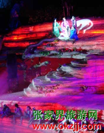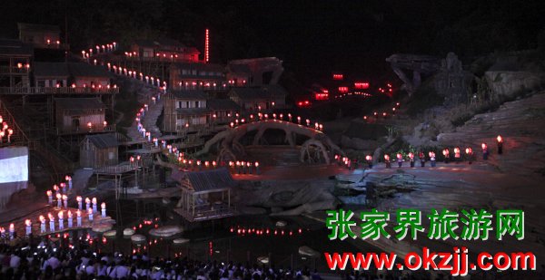 在天門山景區(qū)全球最大的玻璃鋼舞臺(tái)上,在開幕式上試演的世界第一臺(tái)大型山水實(shí)景音樂劇《天門狐仙》,拉開了’2009中國湖南國際旅游節(jié)張家界民族文化周的序幕。