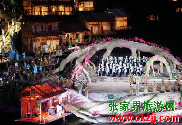 通過音樂、歌舞、魔術(shù)、雜技、影像等表演形式,融入湘西民族特色,演繹一出古老的傳奇愛情故事和奉獻(xiàn)魔幻視覺盛宴。