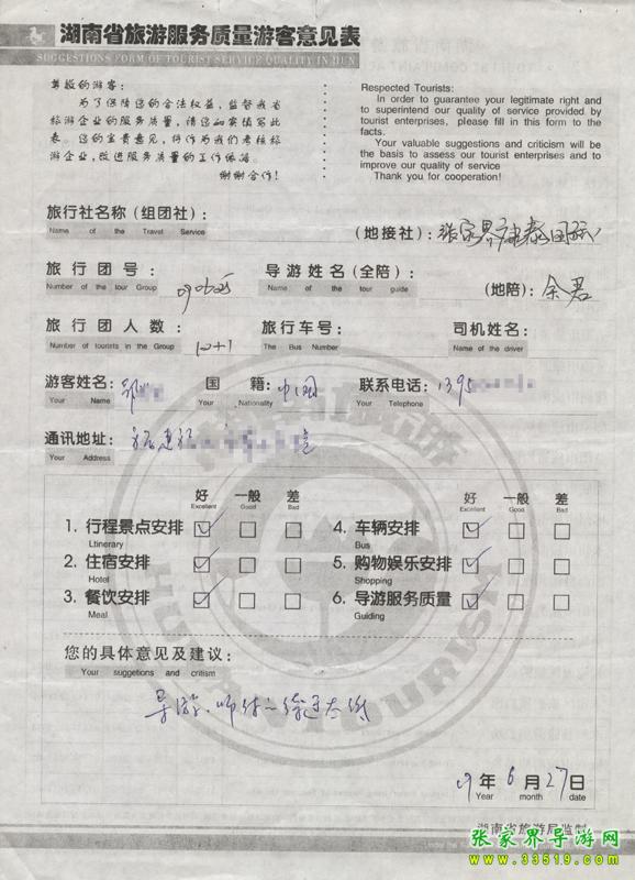 6月25日福建邵先生一行12人質(zhì)量反饋單