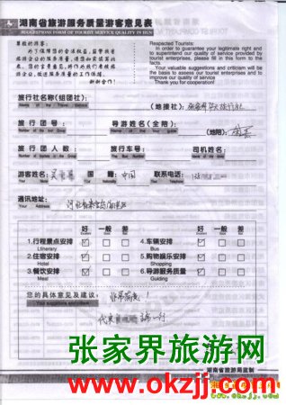 2010年3月21日河北吳小姐張家界旅游質(zhì)量反饋