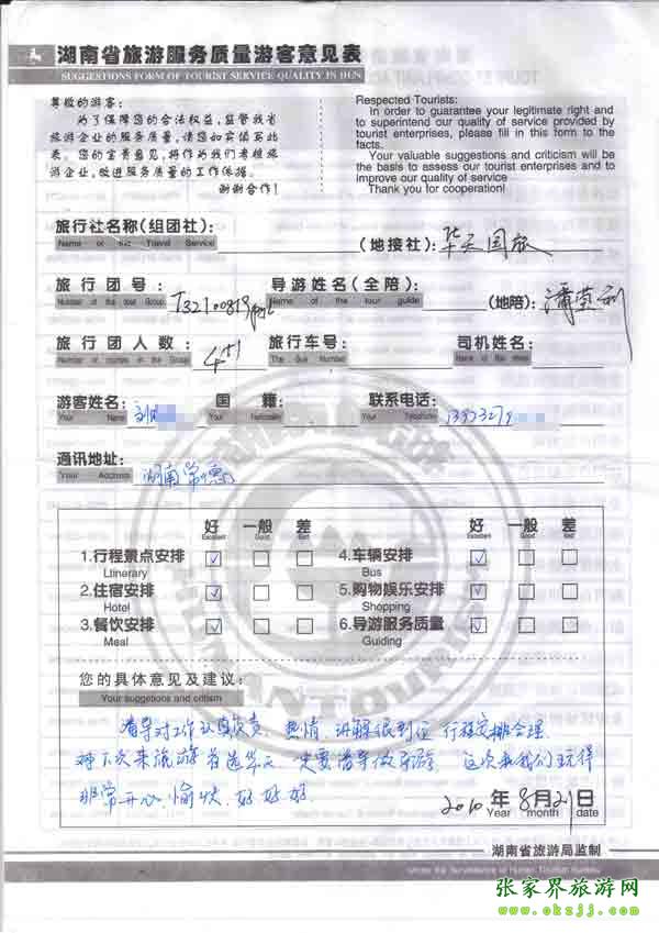 2010年8月21日常德劉小姐一行5位旅游質(zhì)量反饋:這次我們玩得很開心