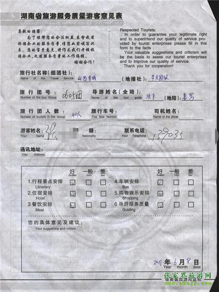 2011年6月8日張先生一行40人旅游質(zhì)量反饋