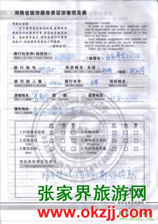 2010年7月7日岳陽(yáng)暑先生一行18位旅游質(zhì)量反饋