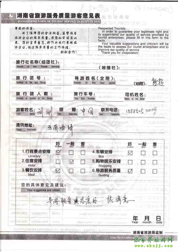 2010年7月22日云南王先生旅游質量反饋:導游服務態(tài)度很好,很滿意