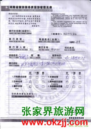 2010年6月26日北京張先生一行14位旅游質(zhì)量反饋
