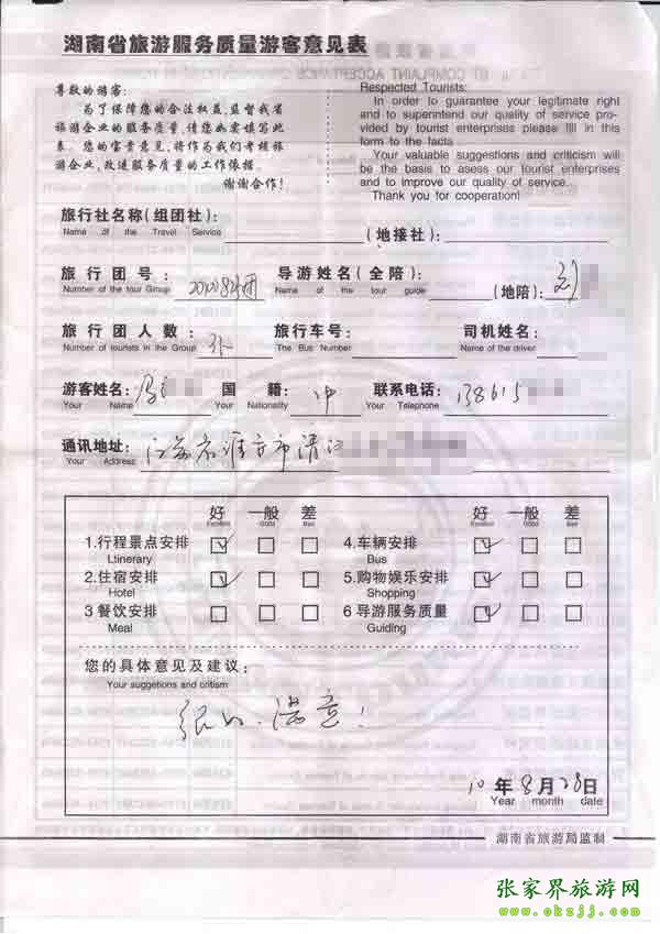 2010年8月28日江蘇馬先生一行3位 旅游質(zhì)量反饋:很好,滿意