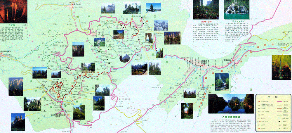 張家界國家森林公園位于武陵源的西南端,與索溪峪自然風(fēng)景區(qū)、天子山自然風(fēng)景區(qū)妣鄰,總面積7.2萬畝,年平均氣溫16度,森林覆蓋率為97%,木本植物達(dá)98科517種之多,比整個(gè)歐洲的樹種多一倍,裸子植物物種占世界一半。張家界國家森林公園以峰稱奇、以水顯幽、以林見秀,主要景點(diǎn)金鞭溪、黃獅寨等。境內(nèi)群峰拔地而起如巨筍傲指蒼穹,金鞭溪夾岸斷巖絕壁,野滕古樹、好一派原始風(fēng)采,溪水如條條彩帶鋪展于千山萬壑之間。