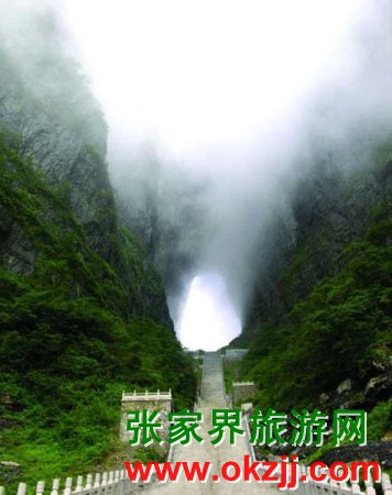 天門(mén)山傳說(shuō) 三國(guó)吳永安六年(公元263年) ,嵩梁山千米高絕之處峭壁忽然洞開(kāi),玄朗如門(mén),吳帝孫休視之吉兆,天門(mén)洞開(kāi)之說(shuō)流傳天下,嵩梁山也由此易名天門(mén)山。拔地擎天的天門(mén)山,山勢(shì)陡險(xiǎn)峻拔,景色雄奇壯麗,被稱(chēng)為張家界的天然畫(huà)屏。天門(mén)山隆起開(kāi)始于燕山運(yùn)動(dòng),再經(jīng)喜馬拉雅山造山運(yùn)動(dòng),山體劇烈抬升千米以上,周?chē)粩鄬庸?jié)理深深切割,加上長(zhǎng)期風(fēng)雨侵蝕的巖溶作用,造就成嵯峨高峙、凌空獨(dú)尊的喀斯特臺(tái)型地貌。其山頂相對(duì)平坦,保存著完整的原始次生林,有著很多極為珍貴和獨(dú)特的植物品種,森林覆蓋率達(dá)90%。其間古樹(shù)參天,藤蔓纏繞,青苔遍布,石筍、石芽舉步皆是,處處如天成的盆景,被人譽(yù)為世界最美的空中花園和天界仙境。