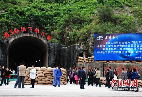 游客在816地下核工程參門口 游客在816地下核工程參觀