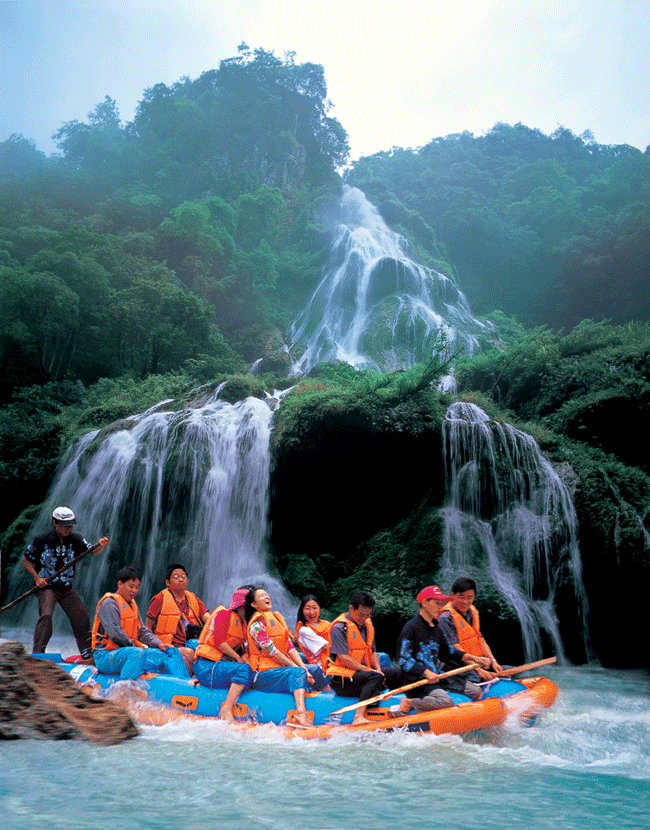 到了大門口,彭導(dǎo)幫我們?nèi)ベI了門票,248元/人,共花去496元。彭導(dǎo)先前給我們預(yù)算是,按最經(jīng)濟(jì)的帳目來算的,470元/人(包括進(jìn)山大門票,但不包括索道、天梯、酒水等),他說出門在外,能節(jié)約點(diǎn)就節(jié)約點(diǎn)。當(dāng)然他也知道我們可能會(huì)超出這個(gè)標(biāo)準(zhǔn),如果有必要,到時(shí)可以再自己花費(fèi)。買了門票后,我給了他500塊,算是這幾天的費(fèi)用,他說,不是說好是每人470的嗎,你應(yīng)該是給我444塊。我說,上次謝謝您的關(guān)心,這次不能讓你太吃虧了。彭導(dǎo)說,那今天晚上我叫店家給你們加個(gè)菜,呵呵呵。 下午,我們玩了森林公園中的黃石寨和金鞭溪。看了天書寶匣、點(diǎn)將臺(tái)、南天柱、摘星臺(tái)、六奇閣,五指峰、金鞭溪、金鞭巖、文星巖、紫草潭、千里相會(huì)等,彭導(dǎo)果然是彭導(dǎo),有著二十年的導(dǎo)游經(jīng)驗(yàn)的他就是不同凡響啊,個(gè)個(gè)景點(diǎn)都是如數(shù)家珍,說得是頭頭是道。(據(jù)網(wǎng)上說,有些導(dǎo)游是只帶路不講解,讓人只是看看表面,而無法去領(lǐng)略張家界那些精美絕倫的凄美傳說。我個(gè)人認(rèn)為張家界的傳說也是應(yīng)該值得每一個(gè)游人去了解,去領(lǐng)略的,如果你來張家界沒有聽到這些傳說的話,那一是你的導(dǎo)游的水平問題,二是你的一個(gè)很大的遺憾,你來張家界的經(jīng)歷是不完美的),什么龍蝦花的來歷,金鞭巖的前身,秦始皇和孟姜女與張家界的關(guān)系。晚上乘百龍電梯上袁家界(張家界的核心)一家旅館住宿。晚餐時(shí),一葷一素一湯。我們吃著吃著,老板笑咪咪的搬上一鍋火鍋,當(dāng)?shù)氐耐岭u火鍋。我們很詫異,我說,我們沒有點(diǎn)這個(gè)菜??!老板,你是不是弄錯(cuò)了?老板說,這是你們彭導(dǎo)叫我特地做的。我突然明白了,一定是彭導(dǎo)是為我多給的那50多塊錢了。由于長途奔波,加上下午又走了很多路,晚上洗了一個(gè)澡就睡下了。山里的氣溫很低,在這全國都如火爐時(shí),張家界的晚上卻要蓋很厚的被子,真是一塊寶地啊。 第二天早上,我們參觀了袁家界的風(fēng)景,其中最有名的當(dāng)然數(shù)天下第一橋,這是由兩座巖石山的山頂自然生長在一起,非人所能為也。天下第一橋的稱號(hào)當(dāng)之無愧啊。當(dāng)然在袁家界,后花園也是不能不看的。張家界號(hào)稱“峰三千,水八百”,在這里你就能明顯的感覺到這句話的前半句是那么的實(shí)在??赐陱埣医绲暮诵脑医?,我們乘車到了天子山(張家界景區(qū)內(nèi)的最高的地方)。玩了賀龍公園、御筆峰、仙女散花、西海、石船出海、仙人橋、天子廟、十里畫廊、一步難行。不巧的是,那天山上下了一點(diǎn)陣雨,雨后一條彩虹掛在天上,更重要的是山上起了一點(diǎn)霧,使整座山都籠罩在霧中,若隱若現(xiàn),看上去就象是在云海中,好象老天特地配合我們似的,難得一見的西海等正好被我們趕上了。彭導(dǎo)告訴我們,這樣的機(jī)會(huì)是很難得的,可能是張家界為了感謝我的再次到來,給了我一個(gè)特別的禮物吧。我大笑。晚上趕到昨天住的地方去住宿。不提。 第三天我們玩了烏龍寨、三道鬼門關(guān)、天波府、一步登天、空中走廊等。主要是在楊家界的景區(qū)范圍內(nèi)。本來是第三天下午要去鳳凰的,但是考慮到我和女友小嵐好容易來張家界一次,盡量將張家界的能玩的地方去玩一下。我也曾聽說張家界不僅峰三千,水八百,同時(shí)天然溶洞也是非常不錯(cuò)的,據(jù)說其中一個(gè)溶洞為一根鐘乳石投保了1個(gè)還是2個(gè)億,(不怎么記得了,呵呵。)而且在張家界的宣傳資料上還看到了有漂流,打水仗等非常刺激的項(xiàng)目。我于是問一下彭導(dǎo),能否幫我們聯(lián)系一下,彭導(dǎo)很爽快的答應(yīng)了,他幫我們聯(lián)系了九天洞和茅巖河的公司。在彭導(dǎo)的上下打通下,本來是315元/人的行價(jià),硬是給用278元/人的價(jià)格給拿下了。當(dāng)搞定這些時(shí),已經(jīng)外面是天黑一片了(彭導(dǎo)家就在楊家界)彭導(dǎo)說他想回家看看,明天我們會(huì)和一群人去看洞和漂流,他就不陪我們?nèi)チ?,明天下午他?huì)在張家界市區(qū)去接我們,到時(shí)會(huì)有車送我們?nèi)ナ袃?nèi)。然后他會(huì)送我們上去鳳凰有車,并幫我們?nèi)ヂ?lián)系鳳凰的朋友來招待我們。 第四天,清晨我們便踏上了汽車去看洞漂流。號(hào)稱亞洲第一大洞的九天洞果然是名不虛傳,我們把它現(xiàn)在開發(fā)的部分粗略的走了一下,就花了我們近月4個(gè)小時(shí),洞中鐘乳石遍地,在五彩斑闌的燈光下,顯得晶瑩剔透,閃閃發(fā)光,讓人感覺到是到了水晶宮一般,地下還有陰河,遠(yuǎn)處通知海(據(jù)說)。對(duì)了,洞中溫度很低,常年在10多度。讓人在其中感覺到一陣陣寒意。故想進(jìn)去的朋友記得多穿點(diǎn)衣服,以免著涼,切記。我們當(dāng)時(shí)就是吃了很大的虧,從洞中出來時(shí),小嵐就在點(diǎn)喀漱。下午來到茅巖河漂流。上船前看到有人賣水瓢,心中不免奇怪。雖說,張家界金鞭溪的水可以喝,但也不是每一條河的水都能喝???于是上前去問,一打聽才知道,這瓢不是用來舀水喝的,而是用來打水仗的。本來因?yàn)樾褂悬c(diǎn)小感冒,我們打算保持中立,但一看到各位船友們個(gè)個(gè)磨拳擦掌