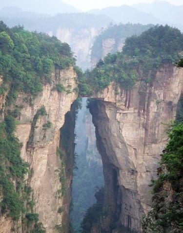 天下第一橋:屬武陵源精華景點(diǎn)。大自然的鬼斧神工,將一塊厚約5米的天然石板,橫空架在兩座山峰之上,把東西兩峰連接。高度、跨度和驚險(xiǎn)均為天下罕見,故稱“天下第一橋”。