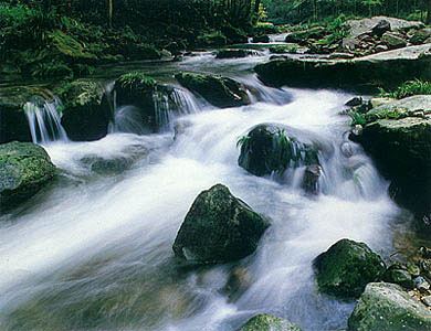 金鞭溪是天然形成的一條美麗的溪流,因金鞭巖而得名。溪水彎彎曲曲自西向東流去,即使久旱,也不會斷流。