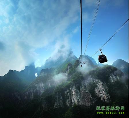 ![]() 纜車從天門山主峰云夢(mèng)仙頂至天門山寺前櫻桃灣廣場(chǎng),總長(zhǎng)度800米,單程運(yùn)行約10分鐘,為無(wú)遮蓋的雙人吊椅式,是天門山山頂?shù)囊粭l絕佳空中觀景長(zhǎng)廊。乘坐纜車緩緩飄行在林海之上,絕美的空中原始花園盡收眼底,白云裊裊,滿目碧翠,時(shí)有飛鳥(niǎo)在腳下掠過(guò),時(shí)有樹(shù)梢花朵似探手可及。神仙般的瀟灑飄逸和無(wú)比的心曠神怡讓人流連忘返。