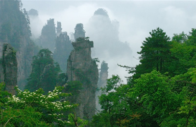 第二天   游覽世界峰林奇觀森林公園(248元已含,兩天有效)—天子山景區(qū):西海、天臺(tái)、仙女獻(xiàn)花、御筆峰、賀龍公園、臥龍嶺、十里畫廊,中途參觀百丈峽,住武陵源索溪峪